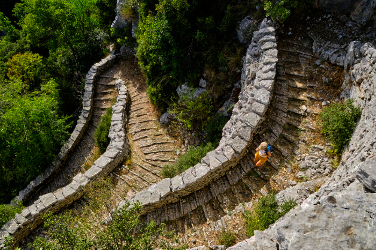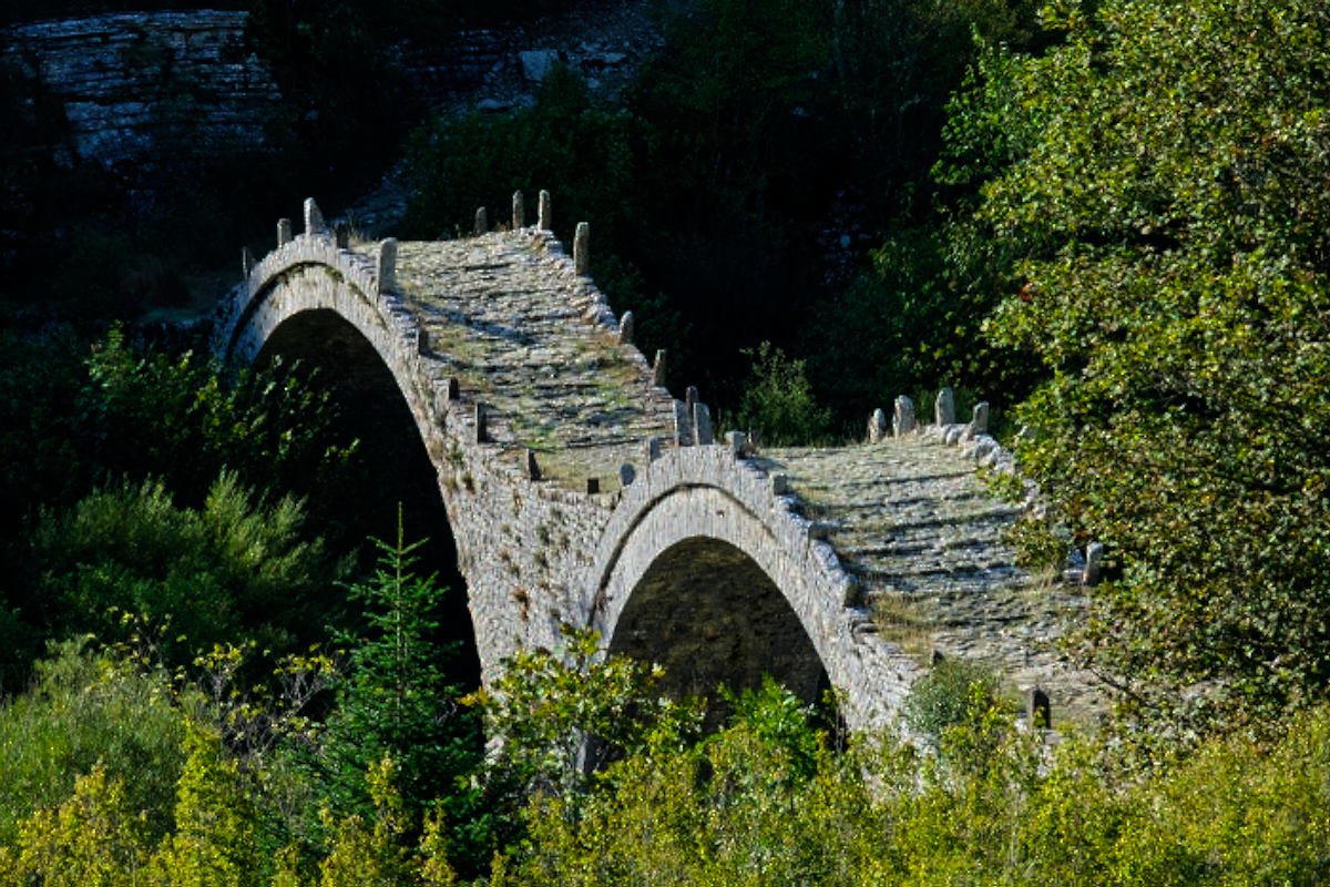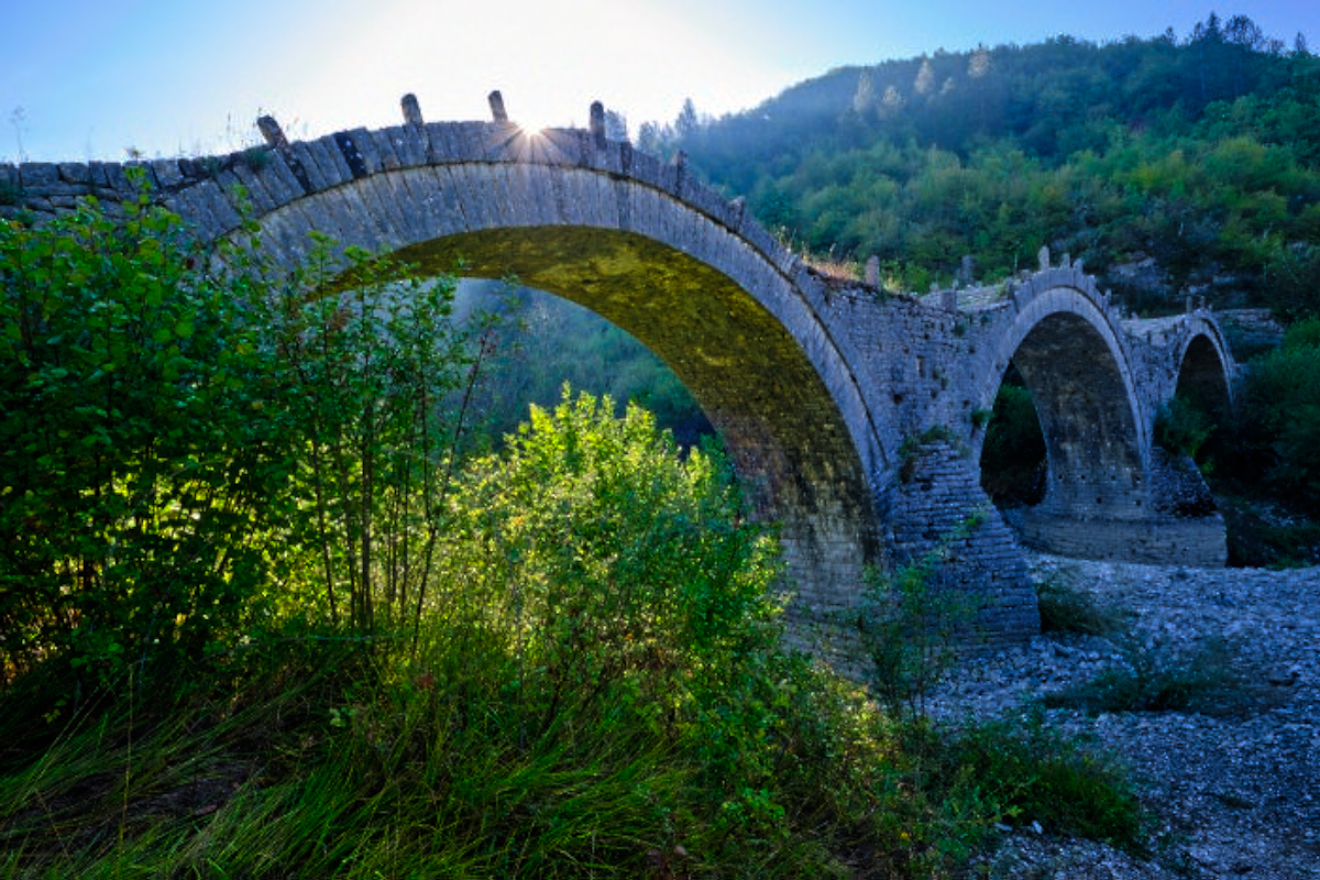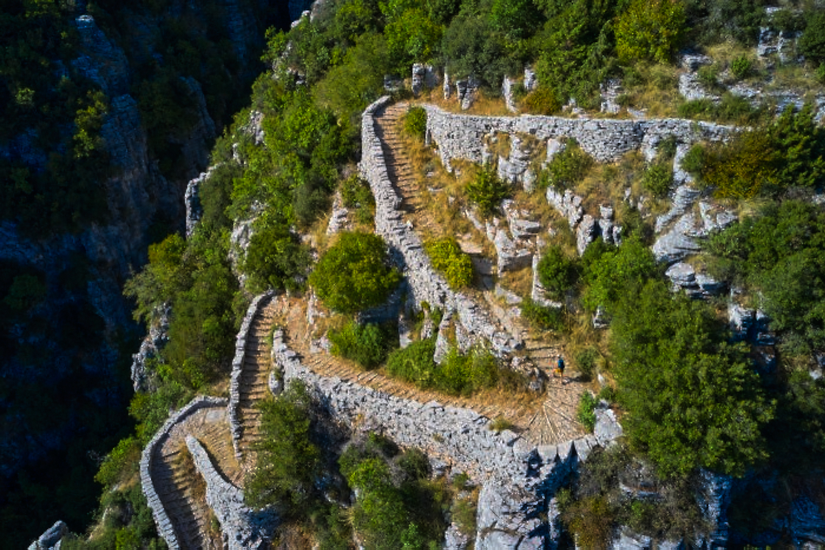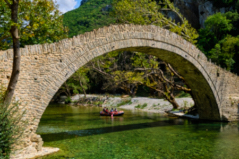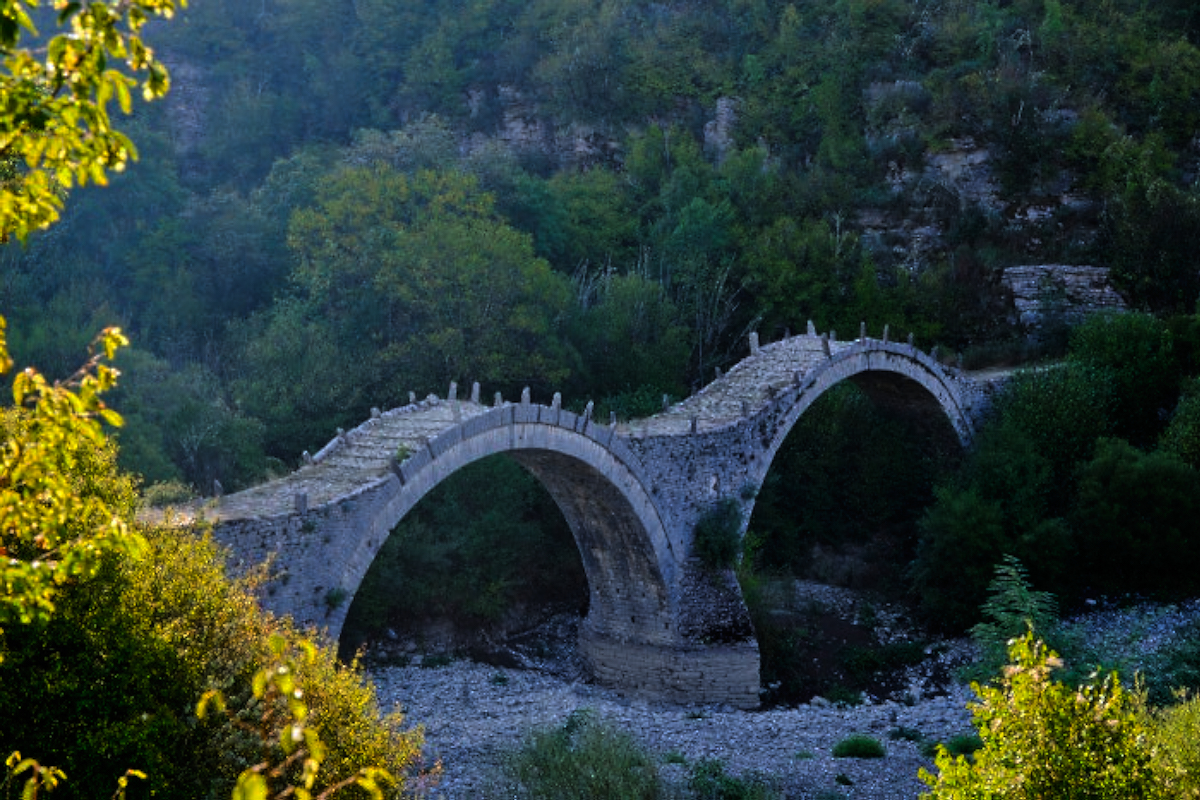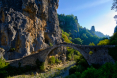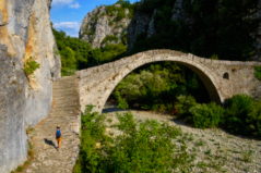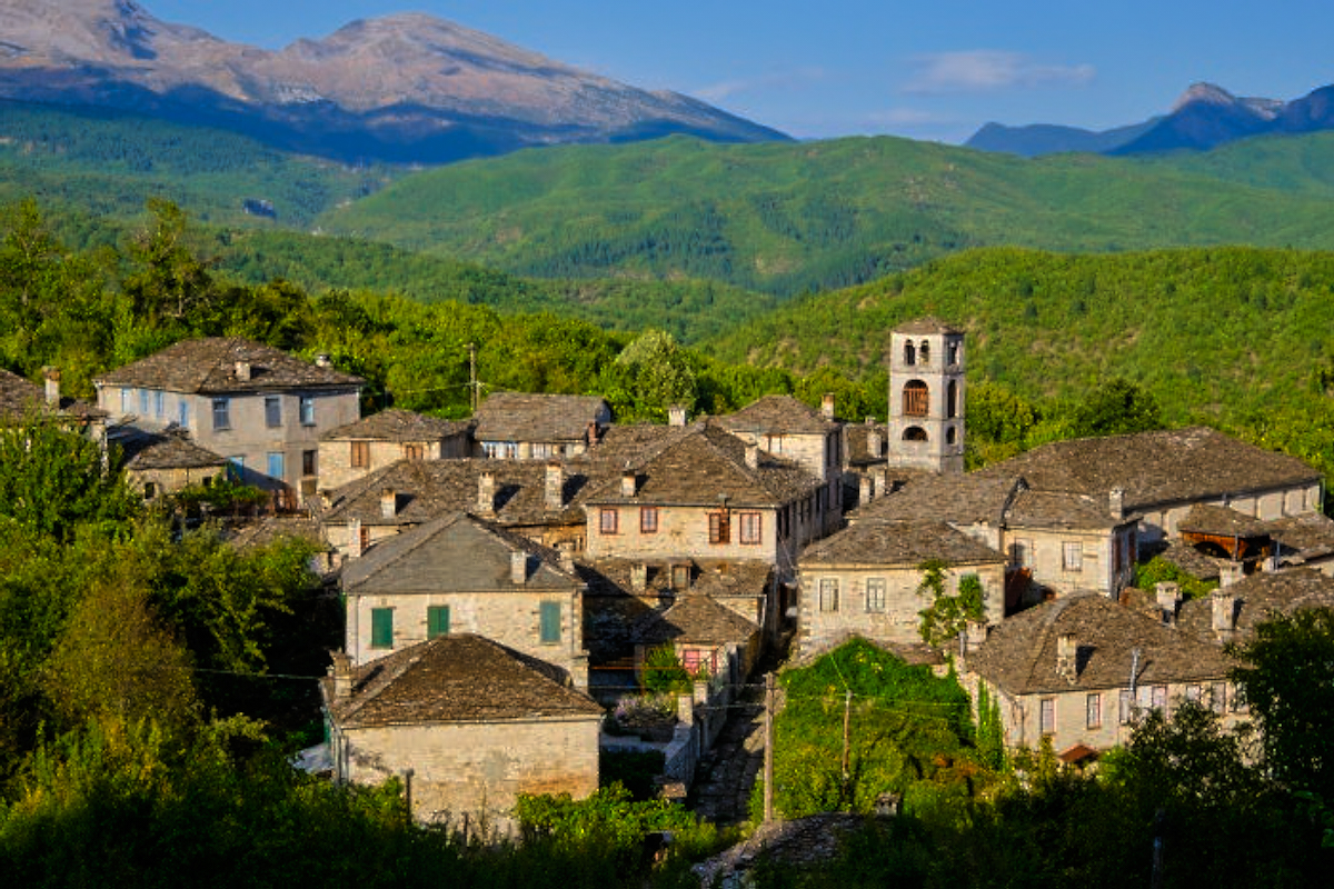 À l’extrême nord-ouest de la Grèce, là où les Balkans dressent leurs murailles de pierre grise, s’étend un monde secret : le pays des Zagoria. Éparpillés sur les pentes du mont Timfi, quarante-six villages semblent avoir poussé de la montagne elle-même, se fondant dans un paysage de forêts profondes, de gorges vertigineuses et de torrents bondissants. Au cœur du parc national de Vikos–Aoos, les gorges de Vikos — classées au patrimoine mondial de l’UNESCO — entaillent la montagne d’une faille vertigineuse d’un millier de mètres, parmi les plus profondes du monde. Sur les anciens chemins muletiers reliant ces hameaux isolés, les randonneurs découvrent une nature saisissante : des forêts de hêtres et de pins abritant une faune rare, des ponts de pierre élégants enjambant des eaux cristallines, et des villages patiemment restaurés par une jeunesse revenue habiter la terre de ses ancêtres. C’est une autre Grèce qui se révèle ici — sauvage, silencieuse, préservée — où le temps s’écoule encore au rythme des montagnes.