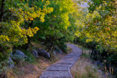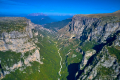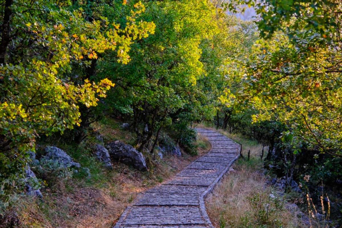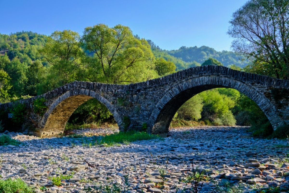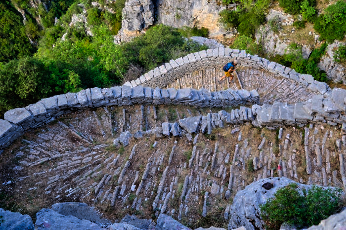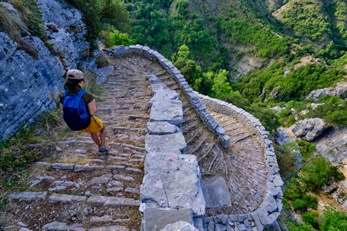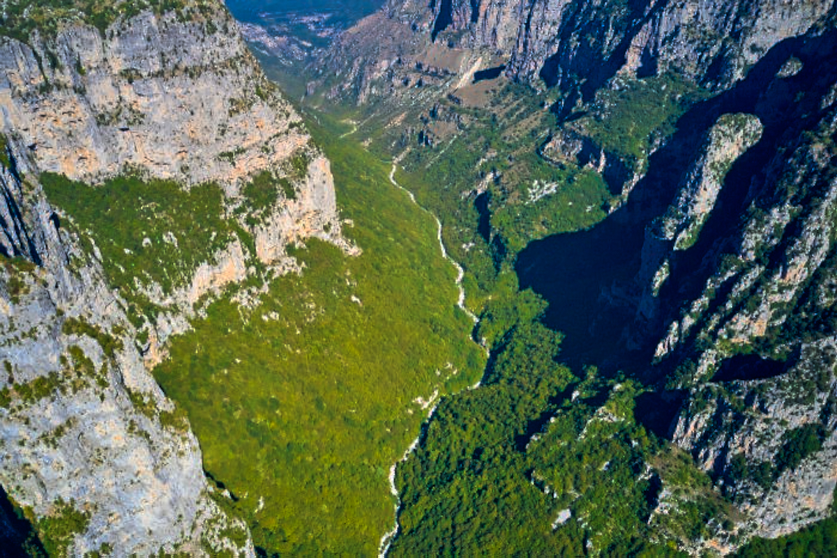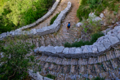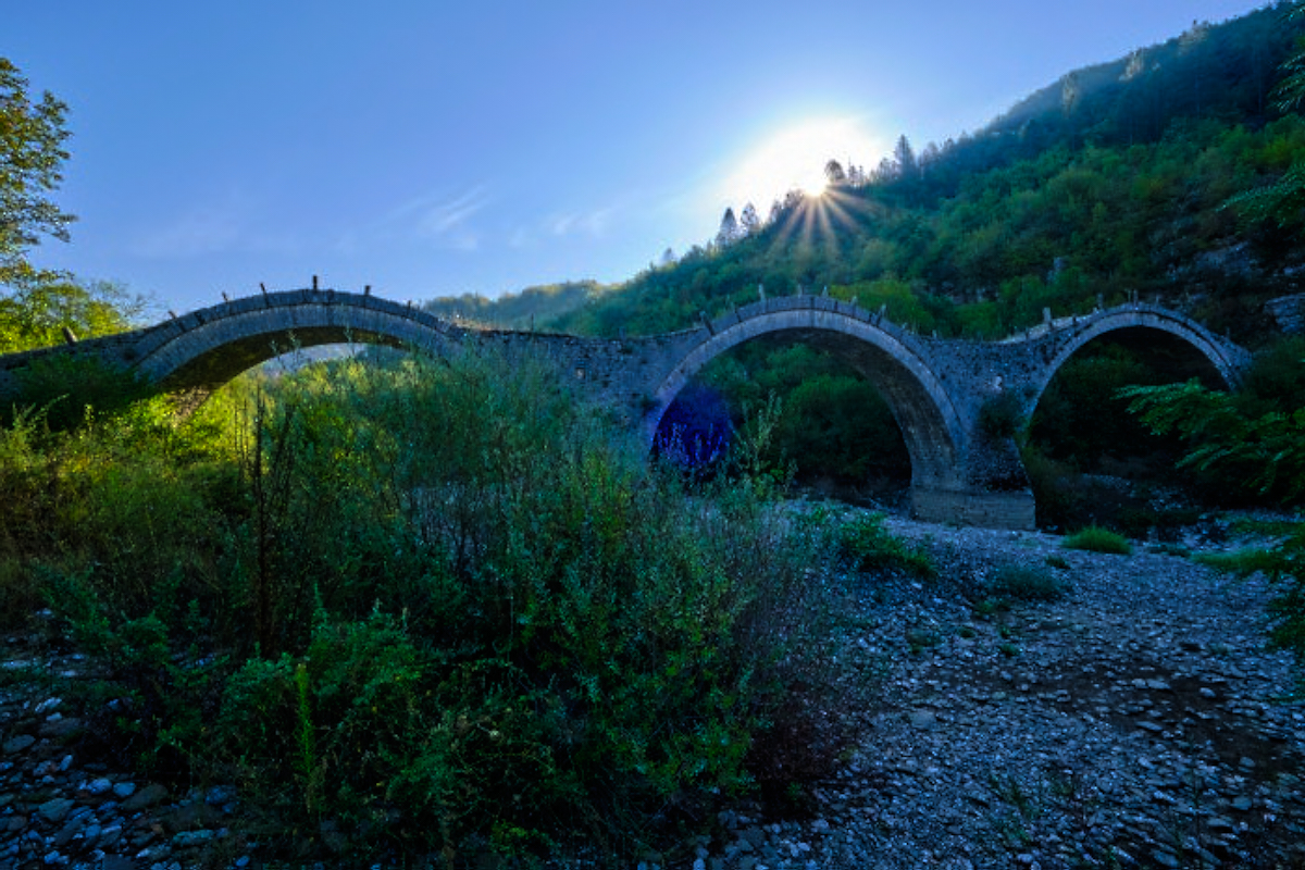 À l’extrême nord-ouest de la Grèce, là où les Balkans dressent leurs murailles de pierre grise, s’étend un monde secret : le pays des Zagoria. Éparpillés sur les pentes du mont Timfi, quarante-six villages semblent avoir poussé de la montagne elle-même, se fondant dans un paysage de forêts profondes, de gorges vertigineuses et de torrents bondissants. Au cœur du parc national de Vikos–Aoos, les gorges de Vikos — classées au patrimoine mondial de l’UNESCO — entaillent la montagne d’une faille vertigineuse d’un millier de mètres, parmi les plus profondes du monde. Sur les anciens chemins muletiers reliant ces hameaux isolés, les randonneurs découvrent une nature saisissante : des forêts de hêtres et de pins abritant une faune rare, des ponts de pierre élégants enjambant des eaux cristallines, et des villages patiemment restaurés par une jeunesse revenue habiter la terre de ses ancêtres. C’est une autre Grèce qui se révèle ici — sauvage, silencieuse, préservée — où le temps s’écoule encore au rythme des montagnes.