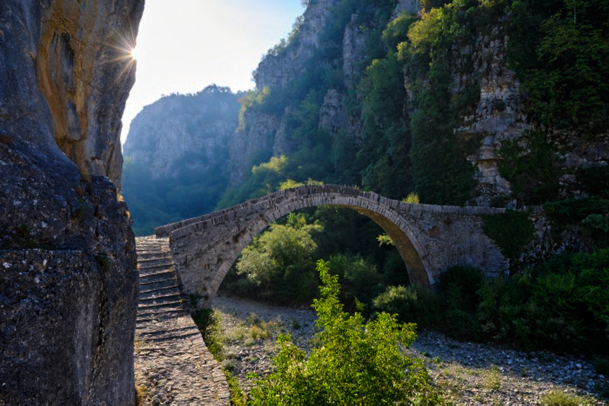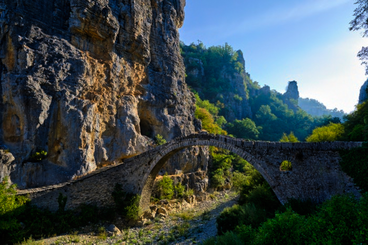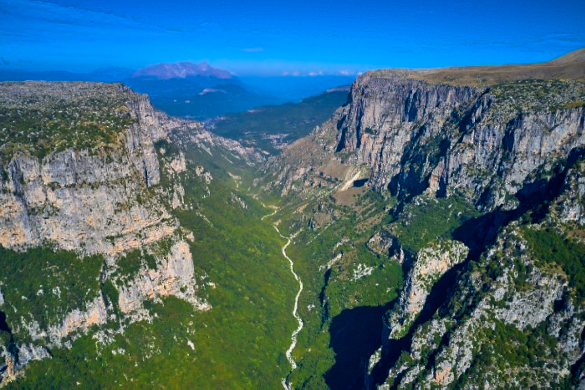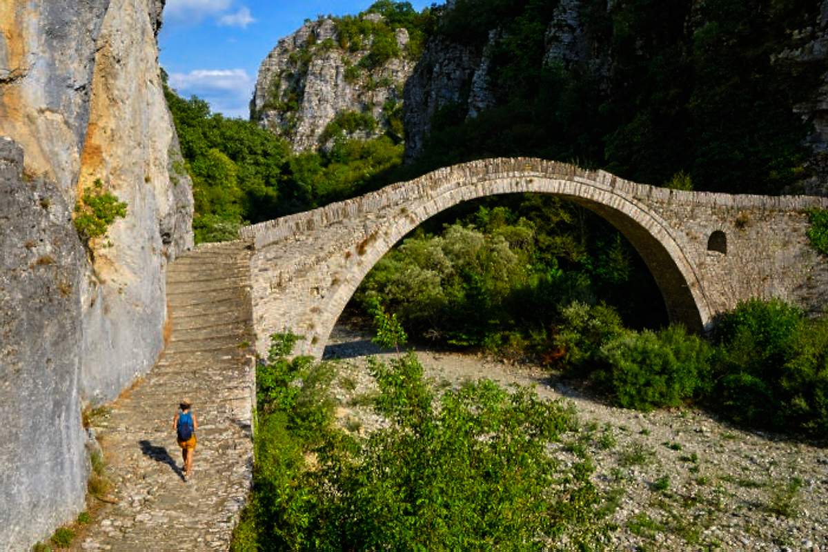 At the far northwestern edge of Greece, where the Balkans rise like grey stone fortresses, lies a secret world — the Land of Zagoria. Scattered across the slopes of Mount Timfi, its forty-six villages seem to have grown out of the mountain itself, blending into a landscape of forests, gorges, and tumbling streams. Here, in the heart of the Vikos–Aoos National Park, the Vikos Gorge — a UNESCO World Heritage site — slices a thousand-metre chasm through the rock, one of the deepest in the world. Along the old mule trails that once linked these remote hamlets, hikers now discover a wilderness of astonishing beauty: dense beech and pine forests sheltering rare wildlife, graceful stone bridges arching over crystal waters, and villages lovingly restored by a new generation returning to breathe life into their ancestral land. This is another Greece — wild, silent, and far from the crowds — where time still moves at the pace of the mountains. Au cœur du parc national de Vikos–Aoos, les gorges de Vikos — classées au patrimoine mondial de l’UNESCO — entaillent la montagne d’une faille vertigineuse d’un millier de mètres, parmi les plus profondes du monde. Sur les anciens chemins muletiers reliant ces hameaux isolés, les randonneurs découvrent une nature saisissante : des forêts de hêtres et de pins abritant une faune rare, des ponts de pierre élégants enjambant des eaux cristallines, et des villages patiemment restaurés par une jeunesse revenue habiter la terre de ses ancêtres. C’est une autre Grèce qui se révèle ici — sauvage, silencieuse, préservée — où le temps s’écoule encore au rythme des montagnes.