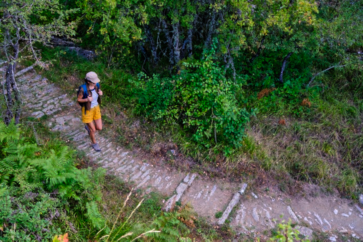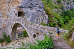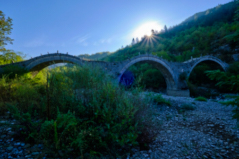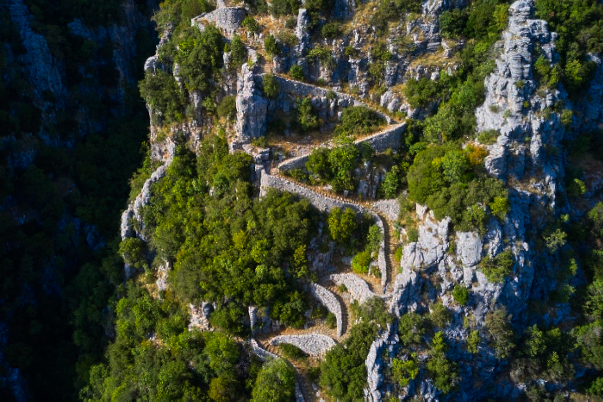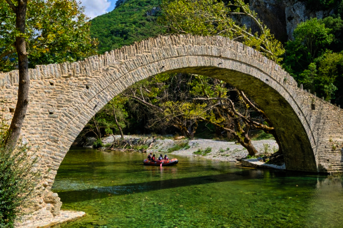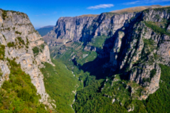 At the far northwestern edge of Greece, where the Balkans rise like grey stone fortresses, lies a secret world — the Land of Zagoria. Scattered across the slopes of Mount Timfi, its forty-six villages seem to have grown out of the mountain itself, blending into a landscape of forests, gorges, and tumbling streams. Here, in the heart of the Vikos–Aoos National Park, the Vikos Gorge — a UNESCO World Heritage site — slices a thousand-metre chasm through the rock, one of the deepest in the world. Along the old mule trails that once linked these remote hamlets, hikers now discover a wilderness of astonishing beauty: dense beech and pine forests sheltering rare wildlife, graceful stone bridges arching over crystal waters, and villages lovingly restored by a new generation returning to breathe life into their ancestral land. This is another Greece — wild, silent, and far from the crowds — where time still moves at the pace of the mountains. Au cœur du parc national de Vikos–Aoos, les gorges de Vikos — classées au patrimoine mondial de l’UNESCO — entaillent la montagne d’une faille vertigineuse d’un millier de mètres, parmi les plus profondes du monde. Sur les anciens chemins muletiers reliant ces hameaux isolés, les randonneurs découvrent une nature saisissante : des forêts de hêtres et de pins abritant une faune rare, des ponts de pierre élégants enjambant des eaux cristallines, et des villages patiemment restaurés par une jeunesse revenue habiter la terre de ses ancêtres. C’est une autre Grèce qui se révèle ici — sauvage, silencieuse, préservée — où le temps s’écoule encore au rythme des montagnes.